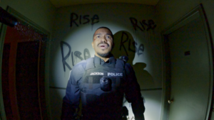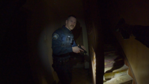 O terror em estilo found footage já foi explorado inúmeras vezes no cinema, mas POV: Presença Oculta tenta renovar essa fórmula ao utilizar algo que se tornou comum no mundo real: as câmeras corporais usadas por policiais. A história começa de maneira intensa, quase como se já estivéssemos no clímax do filme. Dois policiais, Jerome Jackson e Bryce Anderson, atendem uma chamada de violência doméstica durante a madrugada e acabam entrando em uma casa decadente em um bairro problemático. O que parecia ser apenas mais uma ocorrência rotineira rapidamente se transforma em algo muito mais sinistro.