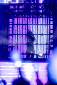 A intensidade seguiu em “Episode X”, em que luzes estroboscópicas e projeções criaram uma atmosfera futurista. Ado parecia se multiplicar no palco, com sua voz potente ecoando como se viesse de todos os lados. Foi uma das músicas que mais evidenciou a fusão entre teatralidade e tecnologia em sua performance.