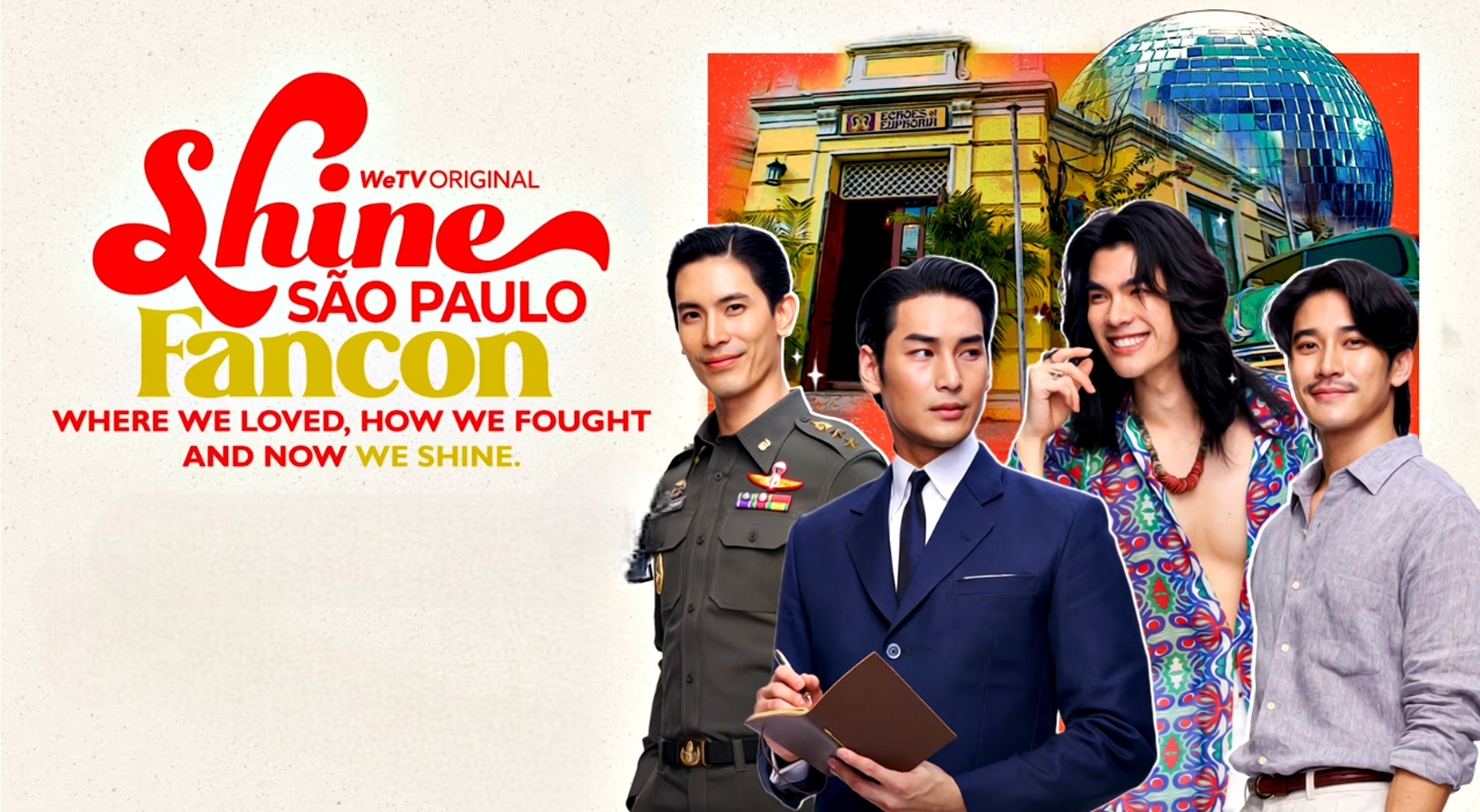 A fancon brasileira segue o formato já consagrado entre os fãs de produções tailandesas, combinando show ao vivo, encenações teatrais e cenas inéditas interpretadas no palco pelo próprio elenco. Assim como na turnê de 4 Minutes, o público poderá reviver momentos marcantes da série, agora com uma ambientação que remete à estética vibrante das décadas de 1960 e 1970, elemento central da identidade visual de Shine.