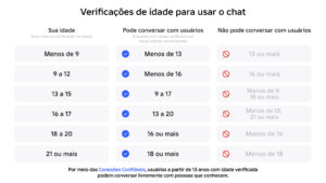 De acordo com a legislação brasileira, crianças menores de 13 anos precisam da autorização dos responsáveis legais para concluir a verificação de idade e acessar o chat. O processo foi desenhado para ser simples e integrado ao aplicativo: