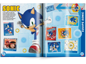 Com um total de 32 páginas, acrescidas de um pôster especial, a coleção reúne 192 figurinhas, sendo 48 delas com acabamento metalizado, oferecendo um apelo visual diferenciado e valorizando ainda mais a experiência de completar o álbum. Cada página foi pensada para destacar momentos, personagens e elementos icônicos do universo de Sonic, criando uma jornada visual que dialoga tanto com a nostalgia quanto com o presente da franquia.