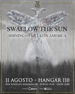 Após consolidar mais um capítulo importante em sua trajetória, a banda Swallow the Sun já tem data para reencontrar o público brasileiro. O grupo finlandês se apresenta no dia 11 de agosto, no Hangar 110, em show que integra a turnê Shining Over Latin America. A realização é da Overload, com ingressos disponíveis pela plataforma Clube do Ingresso.